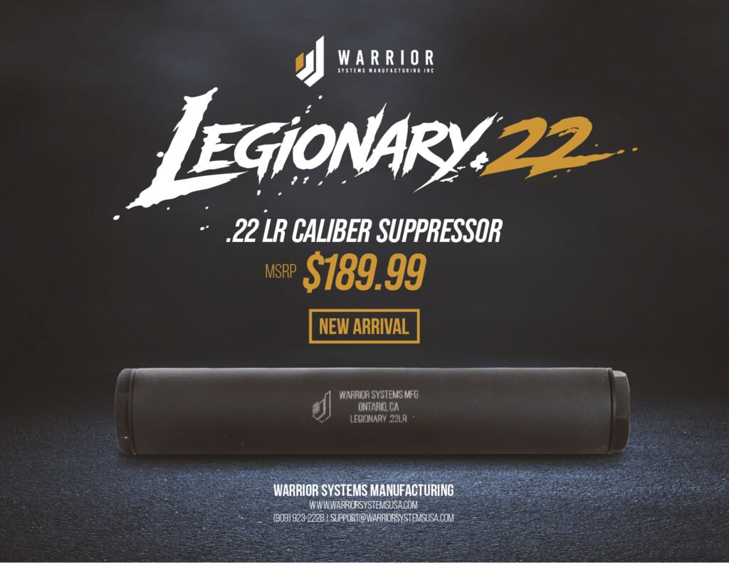 Introducing the Legionary .22 Cal Suppressor Warrior Systems Manufacturing March 27, 2026 Share: Facebook Twitter LinkedIn Reddit Email Print Built for practical performance The Legionary 22 is the newest rimfire suppressor from Warrior Systems Manufacturing. Designed specifically for .22 LR platforms, it focuses on what most shooters actually care about: low weight, effective sound reduction, […]